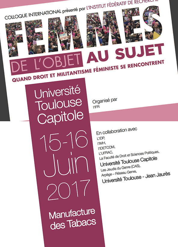 "Femmes de l'objet au sujet : quand le droit et le militantisme féministe se rencontrent" Colloque organisé par l'IDP, l'IDETCOM, l'IMH et l'IFR