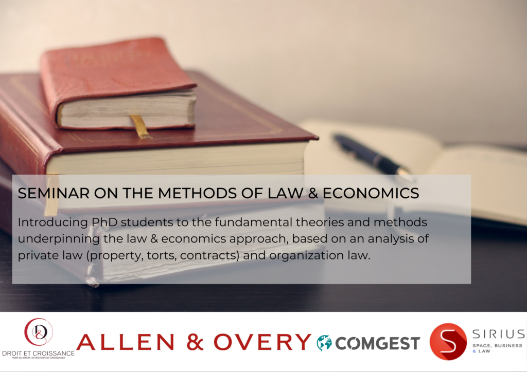 L'objectif de ce séminaire est d'initier les doctorants aux théories et méthodes fondamentales qui sous-tendent l'approche droit et économie, basée sur une analyse du droit privé (propriété, délits, contrats) et du droit des organisations.