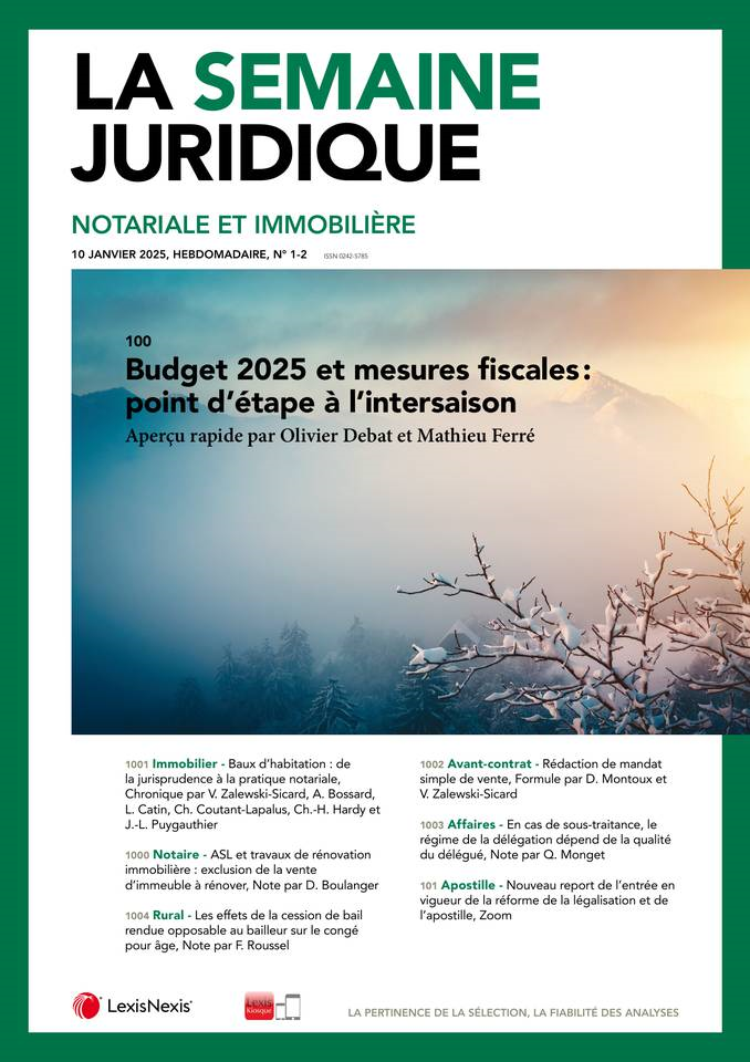 La Semaine Juridique Notariale et Immobilière n° 01-02, 10 janvier 2025, act. 100.