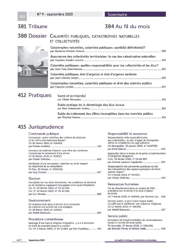 Actualité juridique collectivités territoriales (AJCT), septembre 2020, p. 399-406
