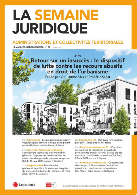 La Semaine Juridique Administrations et Collectivités territoriales n° 20, 19 mai 2025, 2133