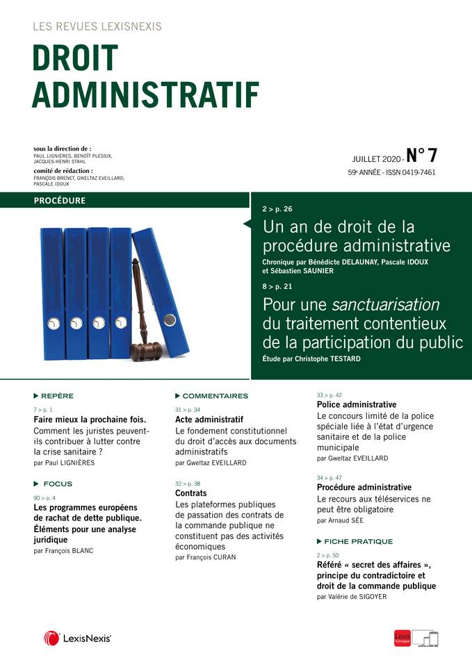 Les revues Jurisclasseur, Droit Administratif, n°7, 2020