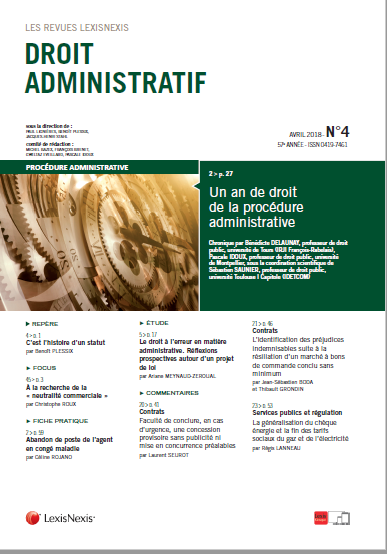 Revue Droit Administratif n°4 avril 2018. Chronique sous la Direction de Sébastien Saunier.