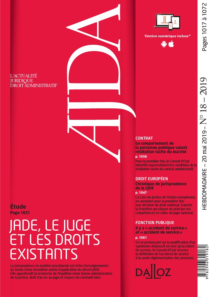 L'actualité Juridique du Droit Administratif, AJDA n°18-2019 du 20 mai. Tribune du Professeur Lucien Rapp