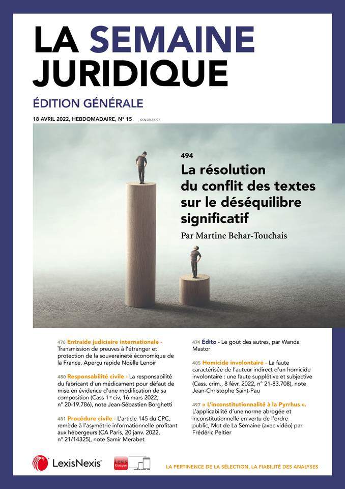 La Semaine Juridique Edition Générale n° 15, 18 Avril 2022, doctr. 495, p.797 et s.