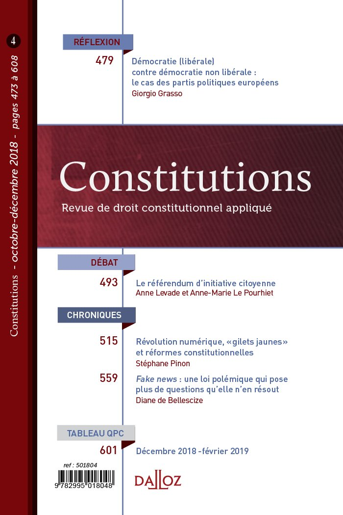 Revue Constitution, octobre/décembre 2018, n°4 p. 533