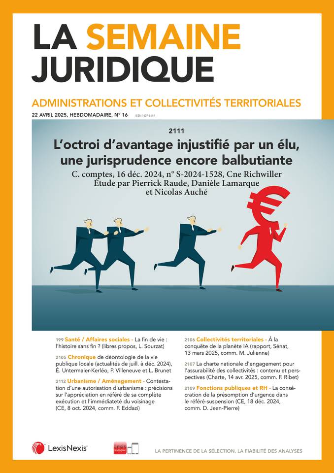 La Semaine Juridique Administrations et Collectivités territoriales n° 16, 22 avril 2025, act. 199