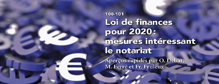 En Une la loi de finances pour 2020 : toutes les dispositions intéressant le notariat détaillées par O. Debat et M. Ferré.