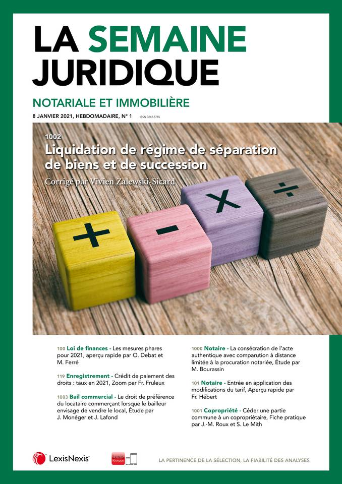 La Semaine Juridique Notariale et Immobilière n° 1, 8 Janvier 2021; act. 100 100, aperçus rapides