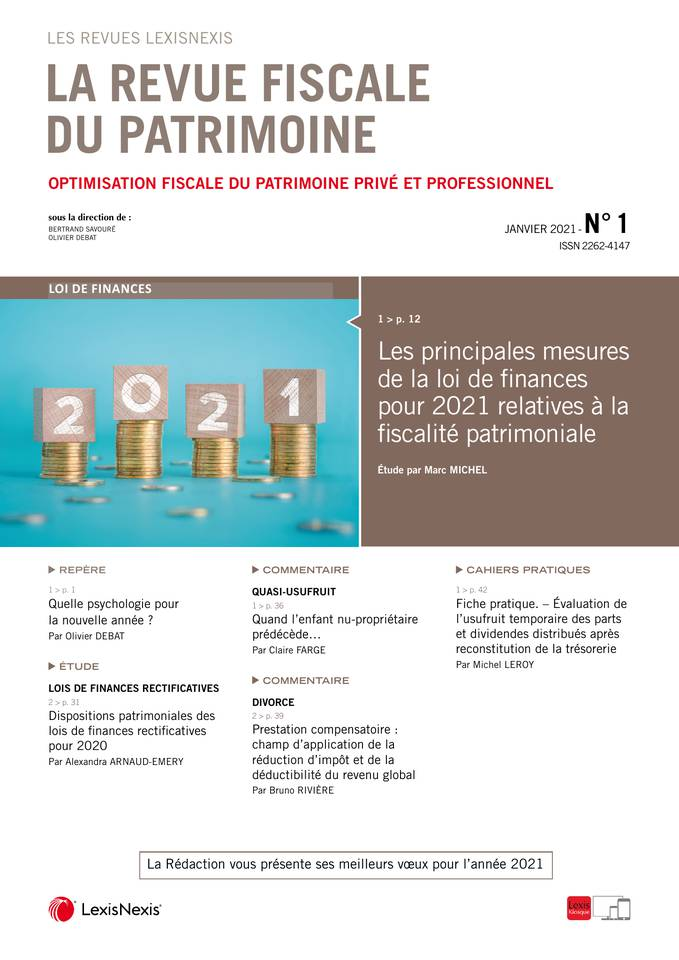 La revue fiscale du patrimoine n° 1, Janvier 2021, 1. Repère par Olivier DEBAT professeur agrégé à l'université Toulouse Capitole, IDETCOM (EA 785) directeur du M2 Droit fiscal codirecteur scientifique de la Revue fiscale du patrimoine.