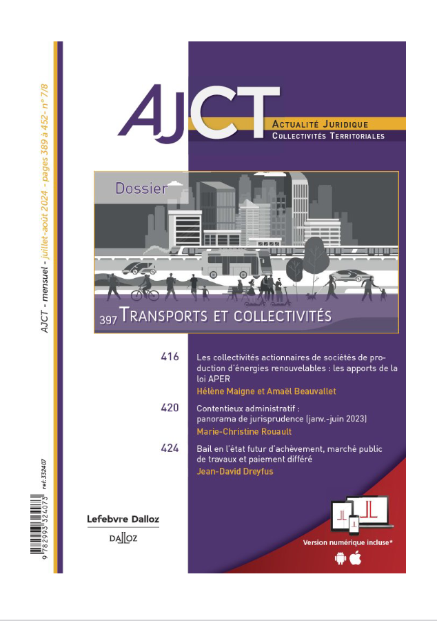 L'AJCT, dans son numéro 07-08/2022, a publié un dossier intitulé « Transports et collectivités », constitué des articles suivants :