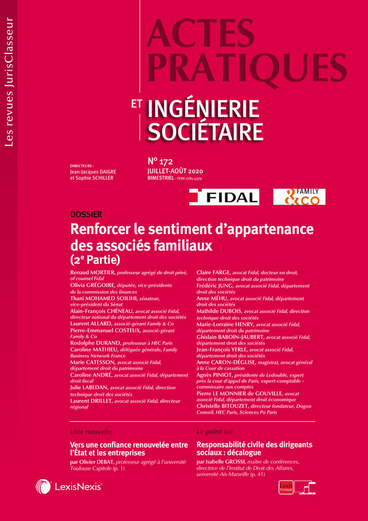 Actes pratiques & ingénierie sociétaire. Bimestriel. N°172 juillet/août 2020. Idée nouvelle