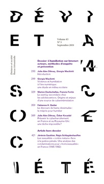 Issue of the journal Médecine & Hygiène | « Déviance et Société » 2019/3 (Vol. 43) edited by Giorgia Macilotti (IDETCOM) and Julie Alev Dilmaç (Cyprus International University PHILéPOL, Paris Descartes University) Introduction pp. 293-298