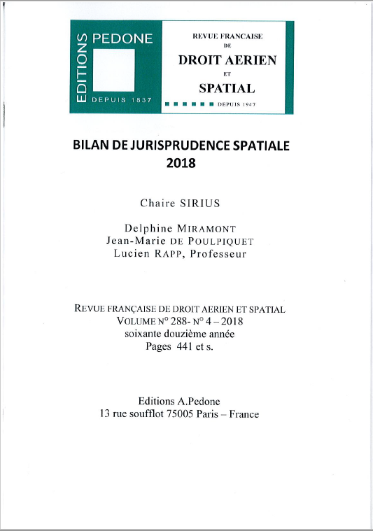 Revue Française de Droit Aérien et Spatial (RFDAS). Volume 288 - no. 4 2018. Quarterly publication Review of space case-law from page 341 onwards